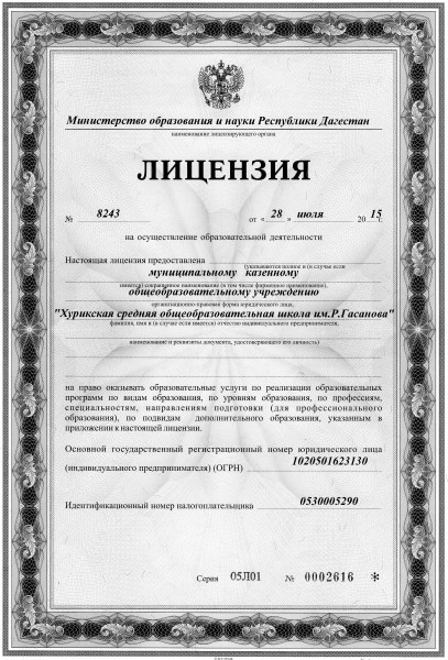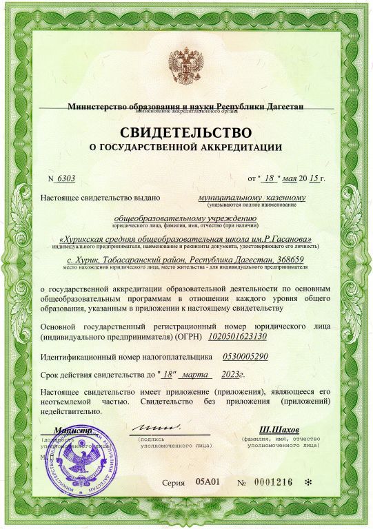 | Полное наименование образовательной организации* | Муниципальное казенное образовательное учреждение "Хурикская средняя общеобразовательная школа им Р.Гасанова" |