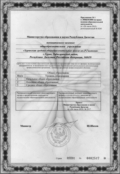 | Адрес местонахождения образовательной организации* | 368659, Республика Дагестан, Табасаранский район с.Хурик, ул. Школьная, 25. |